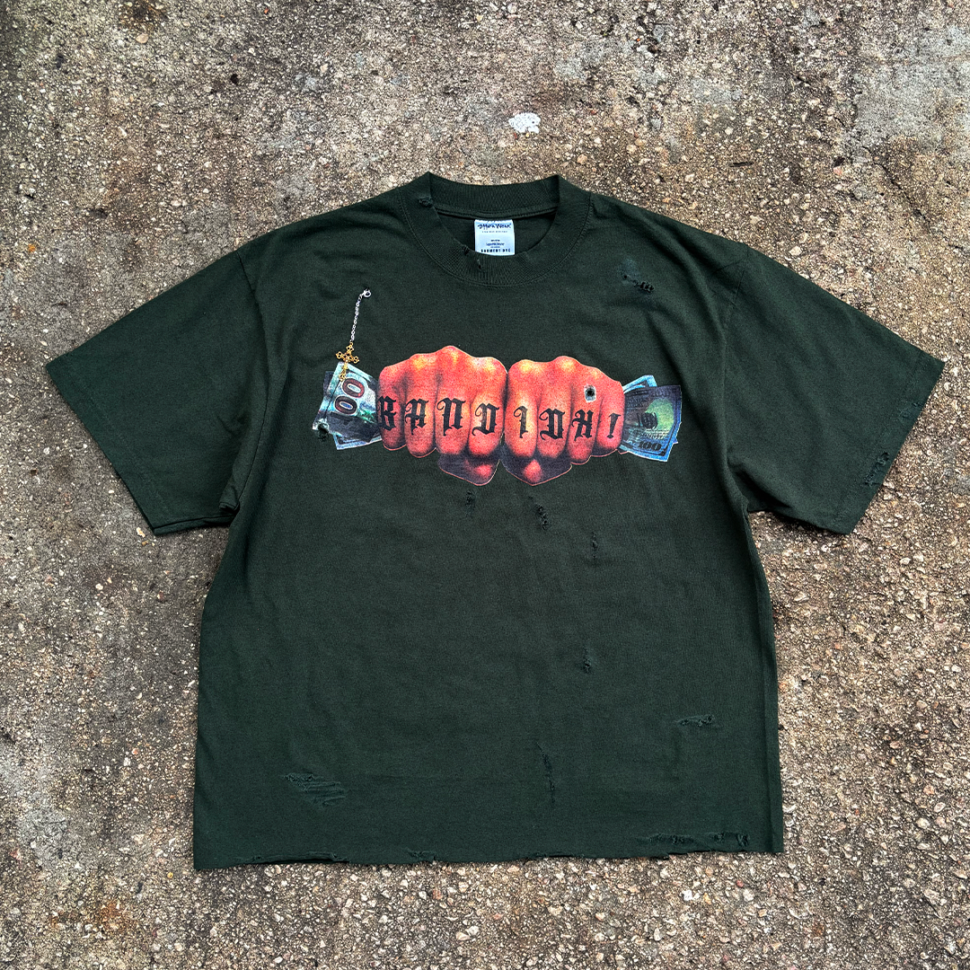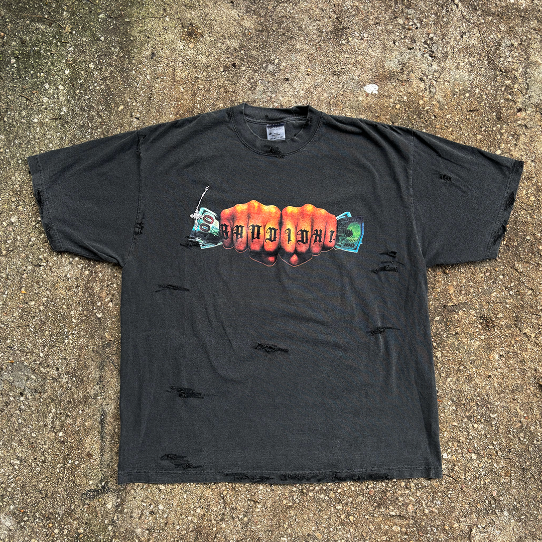 BOXY FIT, DISTRESSED & REMOVABLE ACCESORY